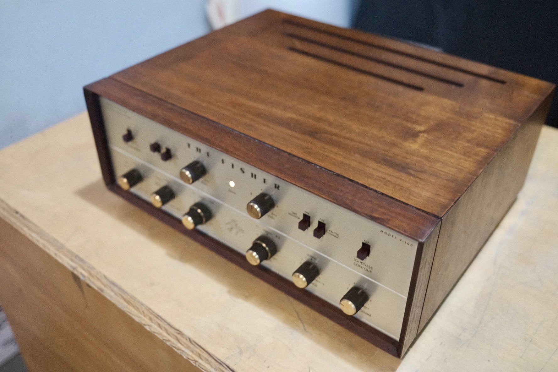 The X-100’s understated brushed-aluminum faceplate, solid metal knobs, and glowing tubes behind a ventilated steel chassis evoke the craftsmanship of a bygone age. Every element was designed for longevity, from its hand-wired circuitry to its robust transformers, making it a beautiful example of Fisher’s dedication to both form and function.